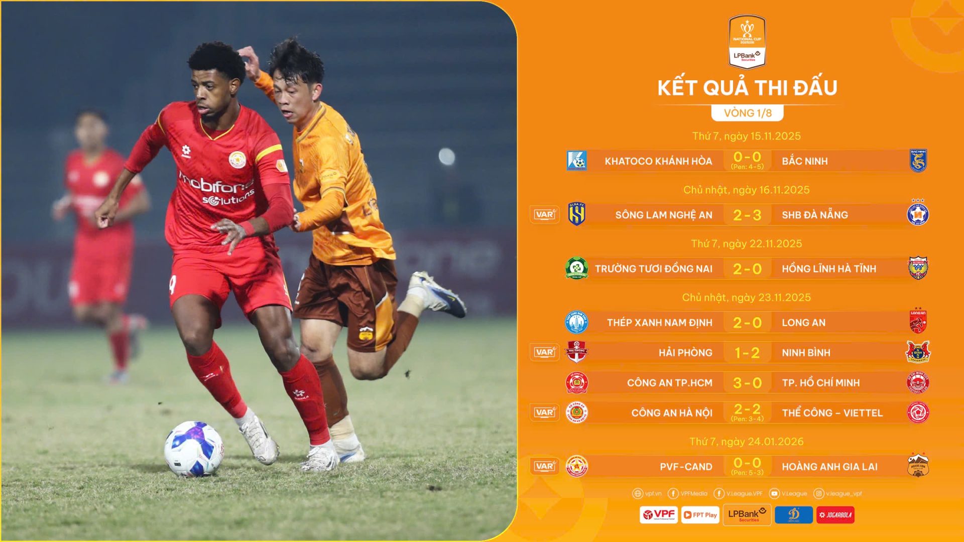 Chiến thắng giúp CLB PVF-CAND tiến vàoTứ kết Cúp Quốc gia Chứng khoán LPBank 2025/26 gặp CLB Ninh Bình. Các cặp đấu còn lại của vòng đấu này: SHB Đà Nẵng – Thép Xanh Nam Định, Công an TP.HCM-Trường Tươi Đồng Nai, Thể Công Viettel – Bắc Ninh.