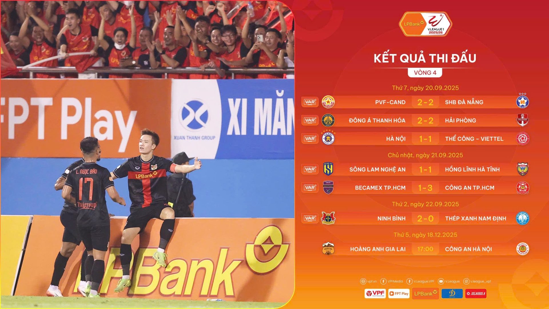 Bảng xếp hạng sau vòng 4 LPBank V.League 1-2025/26: