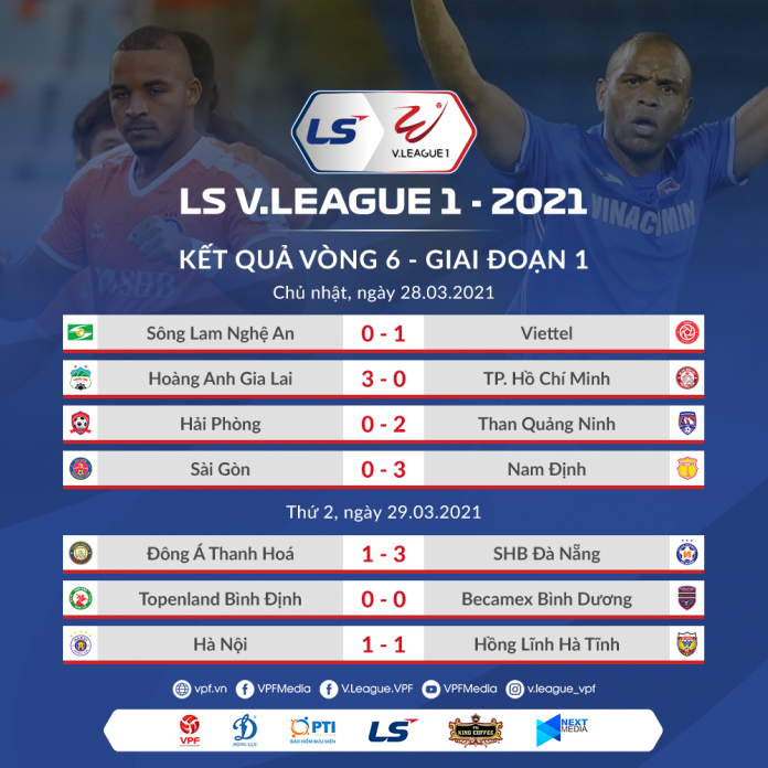 Bảng xếp hạng sau vòng 6 LS V.League 1-2021: