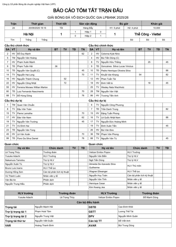Báo cáo trận đấu CLB Hà Nội vs CLB Thể Công Viettel (vòng 4 VĐQG LPBank 2025/26)
