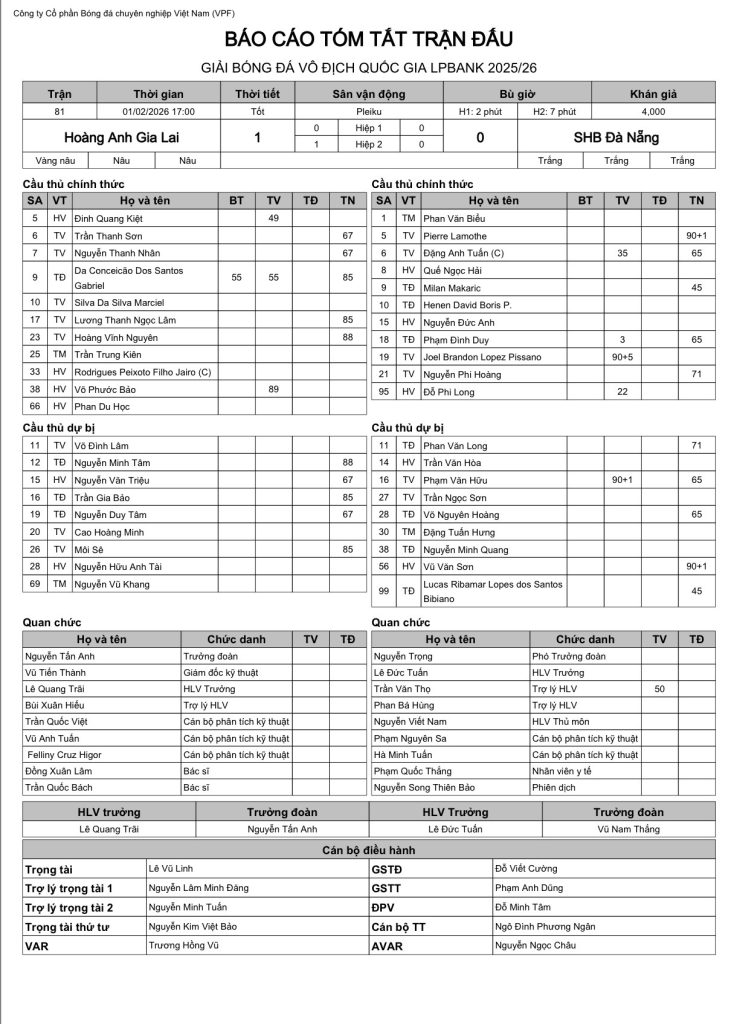 Báo cáo trận đấu CLB HAGL vs CLB SHB Đà Nẵng (vòng 12 Giải VĐQG LPBank 2025/26)