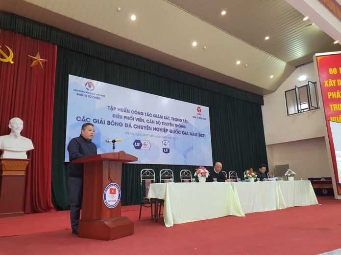 Chương trình tập huấn giám sát, trọng tài, điều phối viên, cán bộ truyền thông các giải chuyên nghiệp 2021 sẽ diễn ra từ 8/1 đến 14/1/2021 tại Trung tâm HLTTQG Hà Nội. Để nâng cao hiệu quả và chất lượng của chương trình tập huấn, đảm bảo tốt nhất cho mùa giải 2021 sắp khởi tranh, chương trình tập huấn năm nay được phân chia các lớp chuyên sâu tùy thuộc nhiệm vụ của các thành viên, tập trung nhiều nội dung quan trọng nhằm cung cấp các kiến thức chuyên môn, chia sẻ kinh nghiệm cho các học viên tham dự Lớp tập huấn.