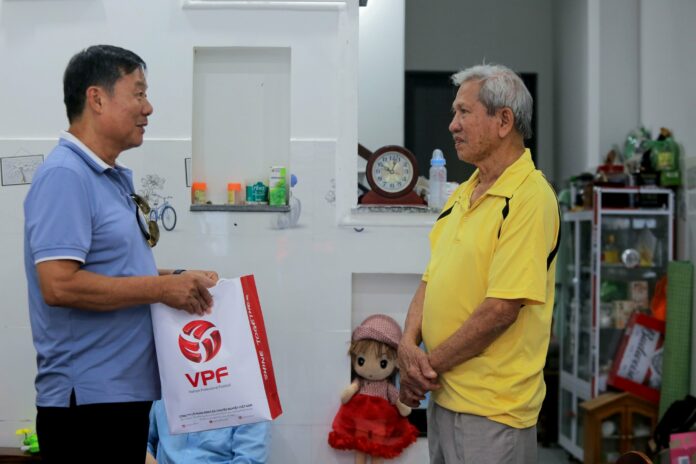 Đi cùng Ban tổ chức chương trình có ông Bùi Xuân Hòa – Ủy viên HĐQT Công ty VPF; ông Trần Vũ, đại diện Chi hội cựu cầu thủ bóng đá Đà Nẵng – người đã kết nối cựu cầu thủ Trần Văn Châu với Ban tổ chức chương trình.