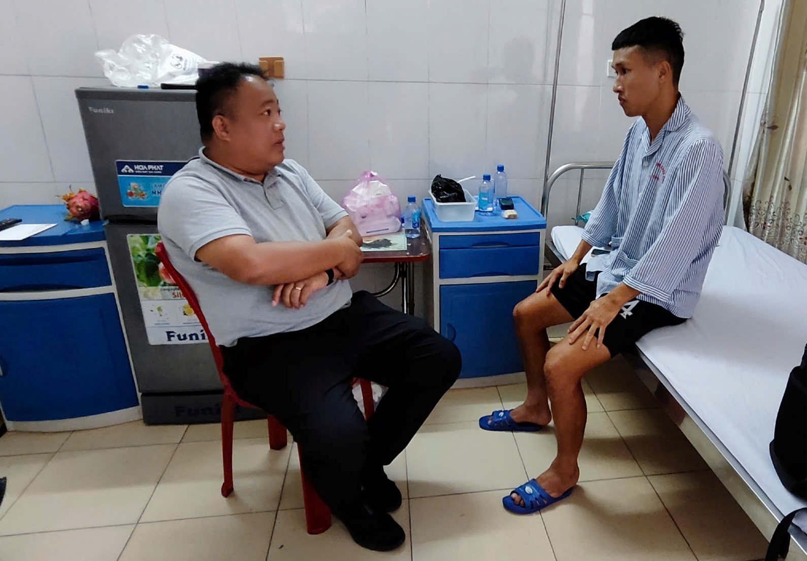 TGĐ Công ty VPF, Trưởng BTC Các giải BĐCN QG 2025/26 Nguyễn Minh Ngọc dành những lời hỏi thăm tình hình điều trị chấn thương, chuyện trò và gửi phần quà động viên Doãn Ngọc Tân. Tuyển thủ ĐTVN chấn thương ở trận Hồng Lĩnh Hà Tĩnh 1-0 Đông Á Thanh Hóa diễn ra chiều 27/8 trên sân Hà Tĩnh. Anh phải ra nghỉ ở phút 60 sau pha va chạm với đối phương ở khu vực giữa sân.