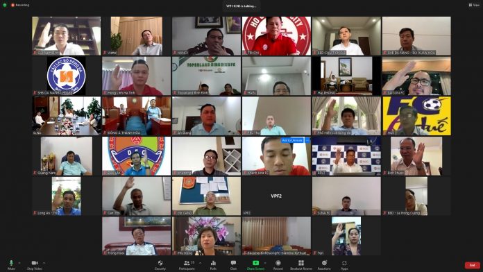 Do ảnh hưởng của dịch Covid 19, cuộc họp được Công ty VPF tổ chức bằng hình thức trực tuyến. Tham dự cuộc họp có ông Trần Quốc Tuấn – Phó Chủ tịch thường trực LĐBĐVN; ông Lê Văn Thành – Phó Chủ tịch LĐBĐVN; ông Trần Anh Tú – Ủy viên Thường trực BCH LĐBĐVN, Chủ tịch HĐQT Công ty VPF; ông Lê Hoài Anh – Tổng Thư ký LĐBĐVN; ông Nguyễn Minh Ngọc – Phó Chủ tịch HĐQT, TGĐ Công ty VPF; cùng lãnh đạo 27 CLB VĐQG, HNQG tham dự mùa giải BĐCN QG 2021.