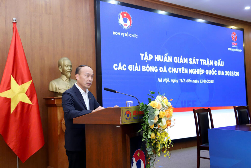 Chiều 11/8, tại trụ sở Liên đoàn Bóng đá Việt Nam (LĐBĐVN), đã diễn ra Lễ khai mạc chương trình tập huấn dành cho lực lượng Giám sát trận đấu tham gia làm nhiệm vụ tại các giải bóng đá chuyên nghiệp quốc gia mùa giải 2025/26.