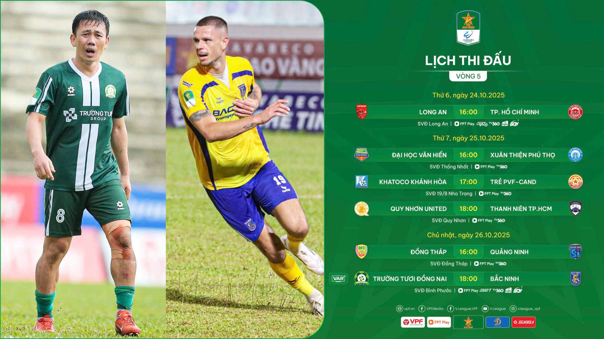 Trận đấu sớm nhất vòng 5 sẽ được tiến hành vào ngày T6 (24/10) tại sân Long An, nơi đội chủ nhà (3đ) sẽ gặp TPHCM (8đ). Ở vòng đấu gần nhất, Long An trắng tay cũng tại sân nhà, nhưng đấy là trước ứng cử viên số 1 của ngôi vô địch – Trường Tươi Đồng Nai. Trước đó, họ từng có 3 điểm khi tiếp đón Đồng Tháp tại sân nhà. Dù vậy, nếu so với TPHCM – đội bóng vẫn bất bại kể từ đầu giải (2 thắng, 2 hòa) thì Long An vẫn sẽ bị đánh giá thấp hơn. Tại vòng 3, thầy trò HLV Nguyễn Minh Phương đã thể hiện phong độ tốt với chiến thắng tưng bừng tới 5-0 khi gặp các “đàn em” – Thanh niên TPHCM.