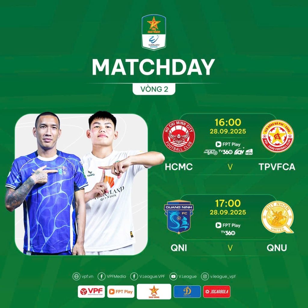 Các trận đấu thuộc vòng 2 Giải HNQG Bia Sao Vàng 2025/26 diễn ra chiều nay 28/9: