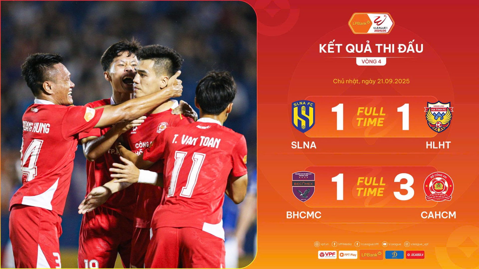 Cặp đấu còn lại trong ngày 21/9, CLB SLNA và HL Hà Tĩnh chia điểm sau trận hòa 1-1. Đội bóng xứ Nghệ muốn tận dụng lợi thế sân nhà để tích lũy 3 điểm. Tuy nhiên, kế hoạch của CLB SLNA đã không thành công. Cầu thủ Justin Julian Garcia mở tỉ số cho đội nhà ngay phút thứ 7. Phút 12, đội khách chỉ còn thi đấu 10 người do Tấn Tài nhận thẻ đỏ. Nhưng qua hiệp 2, phút 54, Lê Viktor ghi bàn gỡ hòa cho HL Hà Tĩnh. Trận hòa khiến CLB SLNA chưa thể bứt phá lên nửa trên BXH.