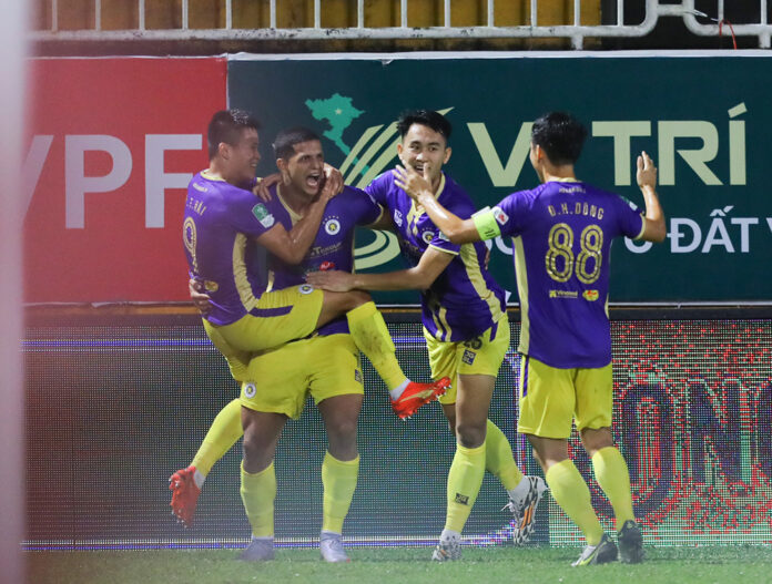 Và điều gì đến đã đến, phút 37, tiền đạo Lucas đã có bàn mở tỉ số cho CLB Hà Nội từ một tình huống uy hiếp khung thành CLB HAGL. Thầy trò HLV Kiatisuk buộc phải đẩy cao đội hình nhằm tìm bàn gỡ, thắp lại hy vọng. Nhưng mọi nỗ lực của đội chủ sân Pleiku đều không thể thành công, cho dù đó là cơ hội trên chấm 11m. Ngược lại, CLB Hà Nội còn có thêm bàn thắng gia tăng cách biệt lên 2-0, vẫn với cái tên Lucas.
