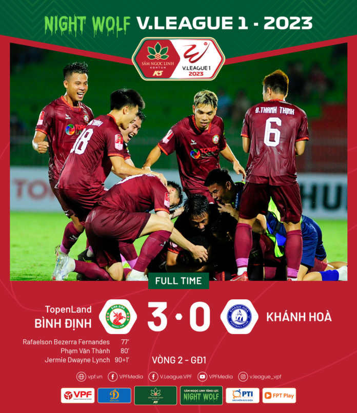 Mọi việc thay đổi rất nhanh từ sau tấm thẻ đỏ của Văn Việt bên phía CLB Khánh Hòa vào phút 74. Thế trận phòng ngự và chờ cơ hội phản công của đội bóng phố biển Nha Trang sụp đổ. Từ đây, thầy trò HLV Đình Tân nhận 3 bàn thua liên tiếp để khép lại trận cầu thứ 2 tại V.League 1. Trận thua khiến Khánh Hoa cảm nhận rõ thêm áp lực ngày càng gia tăng ở cuộc đua tách tốp sắp tới. CLB TopenLand Bình Định tạm trút bỏ áp lực đeo bám từ vòng 1.