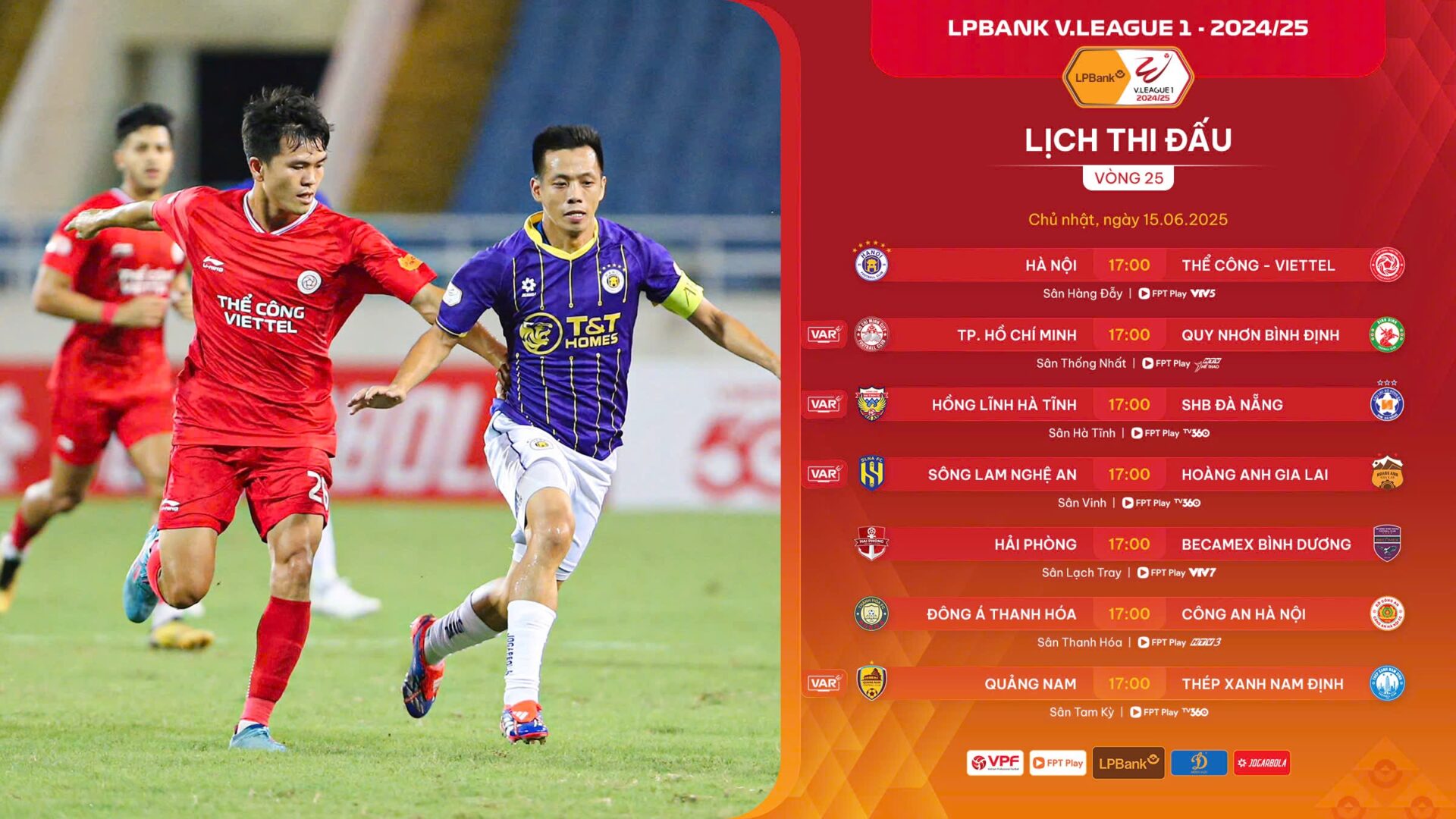 Như đã đề cập, tại sân Hàng Đẫy, Hà Nội FC (46đ) sẽ buộc phải dốc sức giành chiến thắng trước đối thủ Thể Công Viettel (38đ), đồng thời mong chờ TXNĐ (51đ) sảy chân tại sân Tam Kỳ trước Quảng Nam (25đ), qua đó có thể rút ngắn khoảng cách còn 2 điểm và nuôi tiếp hy vọng có thể tạo nên 1 cuộc “ngược dòng kỳ diệu” trong vòng đấu cuối cùng. Nhưng ngược lại, cũng chỉ cần TXNĐ có ít nhất 1 điểm trong chuyến làm khách này là mọi cố gắng đua tranh ngôi Vương của đội bóng Thủ đô sẽ thành vô ích. Bởi vậy, không có gì để nghi ngờ vào tính chất gay cấn của cuộc đua “song mã” này, với 2 trận đấu gần như được người hâm mộ 2 bên… nối mạng trực tiếp. Cũng vì thế mà trước thềm vòng 25, giới mộ điệu cùng mong chờ sẽ được thưởng thức diễn biến của cuộc đua theo hình thức rất đặc biệt từ phía nhà đài phát sóng trực tiếp (FPT Play và VTV).