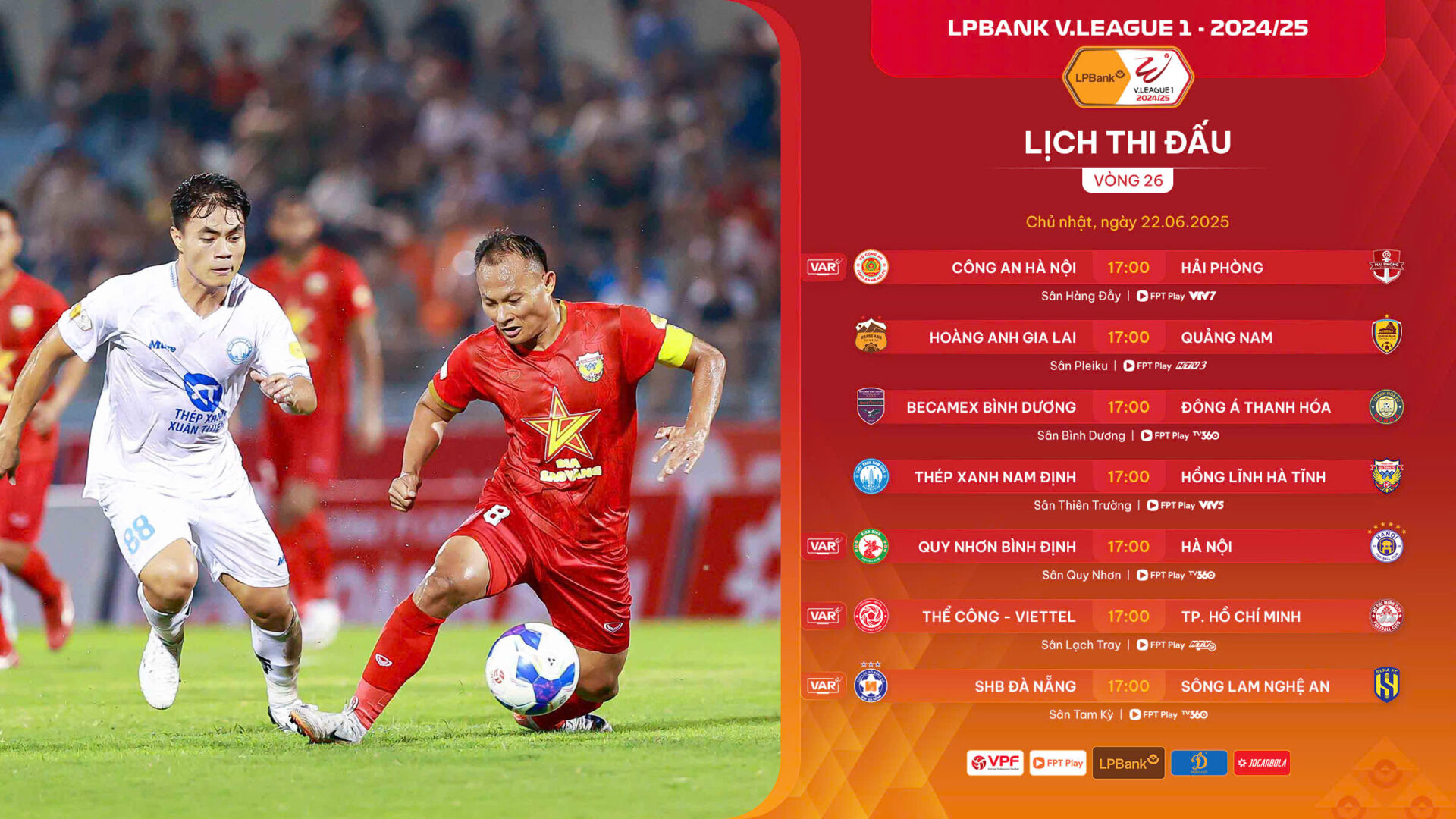 Ở vòng 26 LPBank V.League 1-2024/25, công nghệ VAR sẽ được áp dụng tại 4 trận đấu: SHB Đà Nẵng vs Sông Lam Nghệ An, Thể Công Viettel vs TP.HCM, Quy Nhơn Bình Định vs Hà Nội FC và Công An Hà Nội vs Hải Phòng. Hai trận đấu có ý nghĩa quyết định đến cuộc đua trụ hạng ở vòng 26 Giải VĐQG LPBank V.League 1 – 2024/25 sẽ do các trọng tài FIFA đến từ Malaysia điều hành. Cụ thể, trọng tài Razlan Joffri Bin Ali (sinh năm 1985) sẽ bắt chính trận đấu giữa SHB Đà Nẵng và Sông Lam Nghệ An trên sân Tam Kỳ. Trong khi đó, trọng tài Muhammad Izzul Fikri Kamaruzaman (sinh năm 1995) sẽ điều hành trận đấu giữa Quy Nhơn Bình Định và Hà Nội FC.