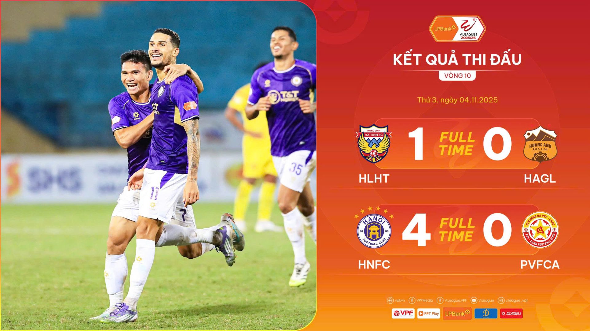 Trong khi đó, thất bại ở vòng 10 khiến CLB PVF-CAND và CLB HAGL chia nhau 2 vị trí cuối BXH, với cùng 7 điểm. Hiện nay, nhóm cuối BXH đang rất “nóng” khi hàng loạt CLB bằng điểm, hoặc chỉ hơn nhau 1-2 điểm khiến mỗi vòng đấu có thể thay đổi rất nhiều…
