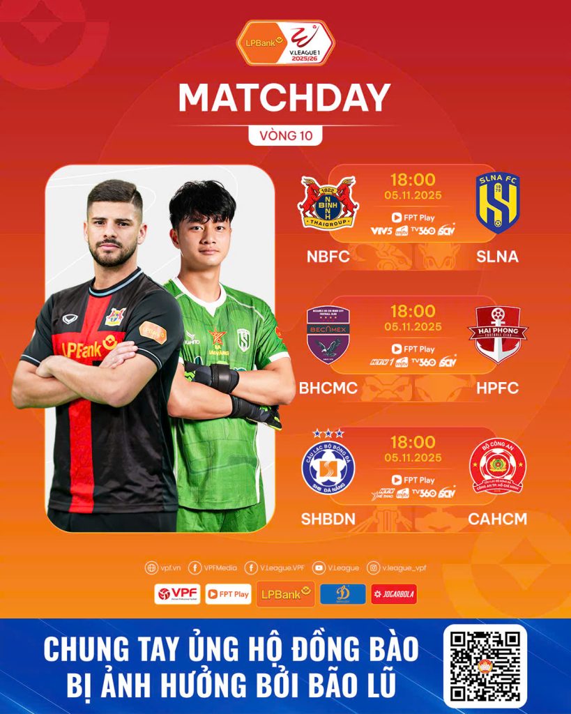 Các trận đấu tiếp theo của vòng 10 LPBank V.League 1-2025/26 diễn ra chiều nay (5/11):