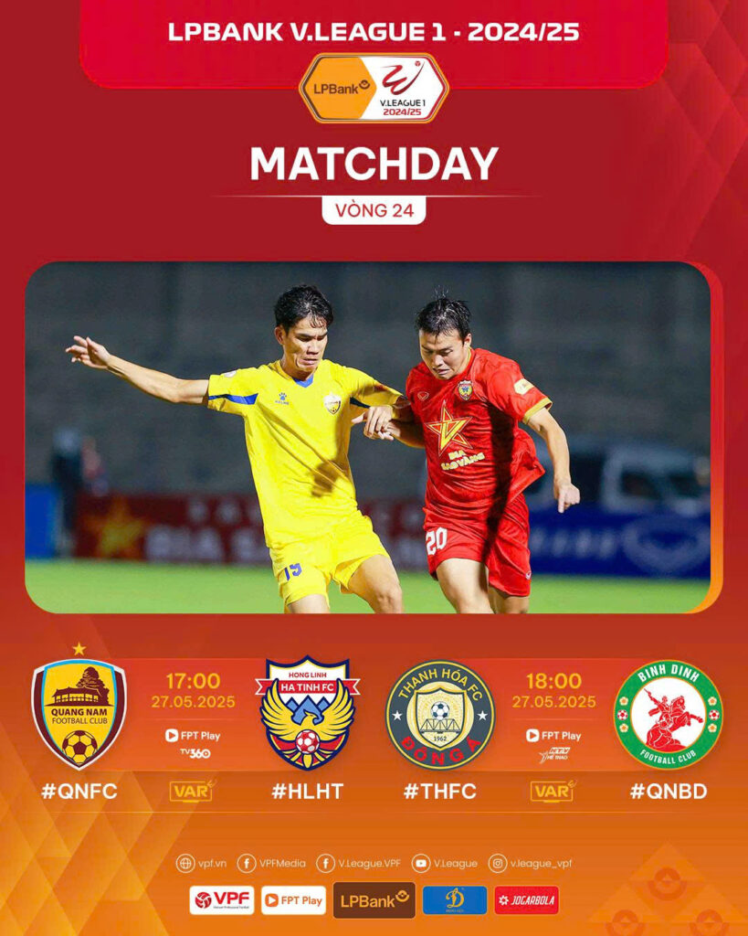 Hai trận đấu còn lại của vòng 24 LPBank V.League 1-2024/25 sẽ diễn ra chiều nay (27/5):